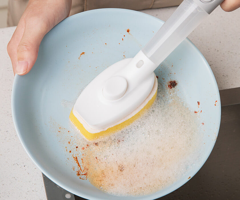 A great example is our soap dispensing dish brush that allows users to dispense soap effortlessly during cleaning and streamline the dishwashing process.
